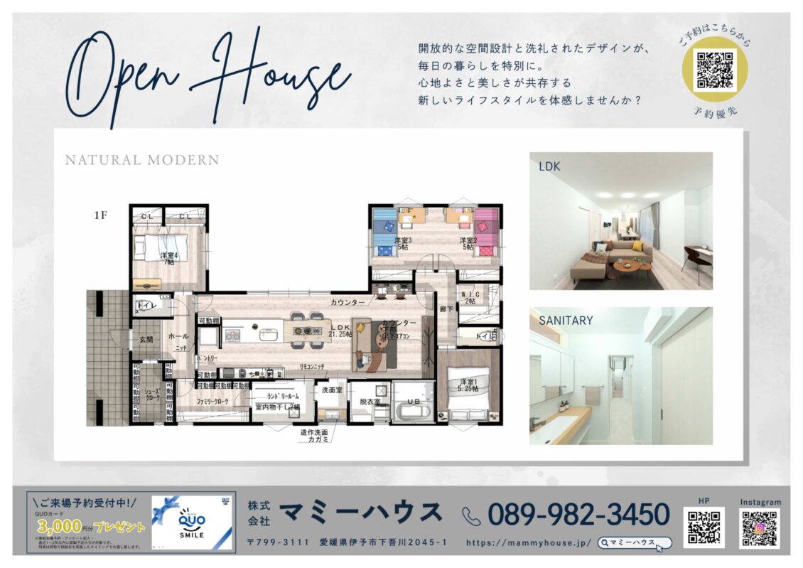 ■平屋37坪 - 子育て世代向けの完成見学会場所: 伊予市上三谷